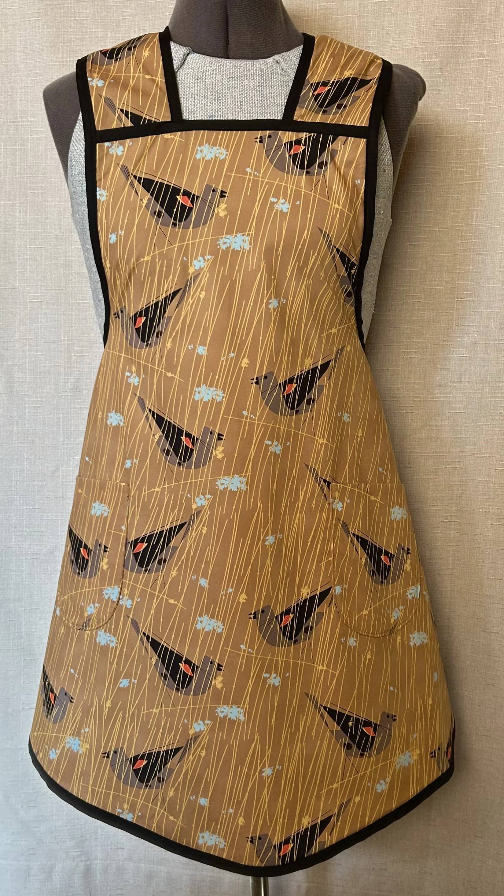 My PrimoPrint Aprons use Spoonflower’s printed-on-demand fabric, which is designed by independent artists who earn a royalty on every sale. Like my linen and children’s aprons, PrimoPrint Aprons are not guaranteed to follow my one-of-a-kind claim as customers have asked for repeats of select fabrics and styles. All yardage has been pre-washed and dried before cutting and sewing to take care of any shrinkage.