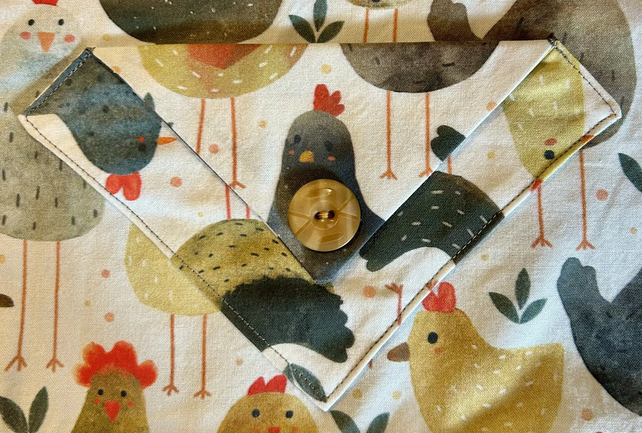 Take a square pocket, turn it on its side, fold over one corner while anchoring it with a vintage button and you have a pocket with style. Its double layer gives it body and style.