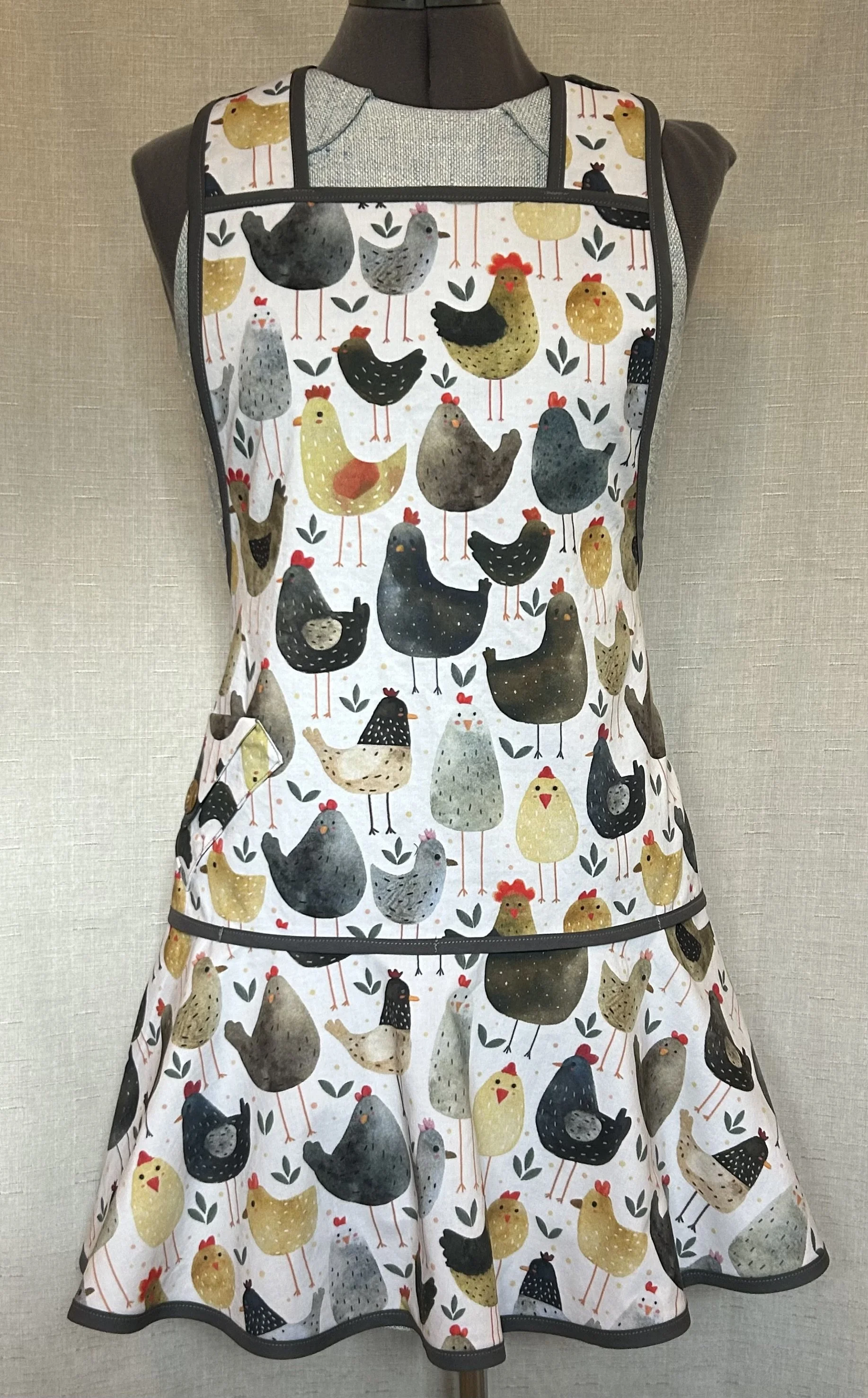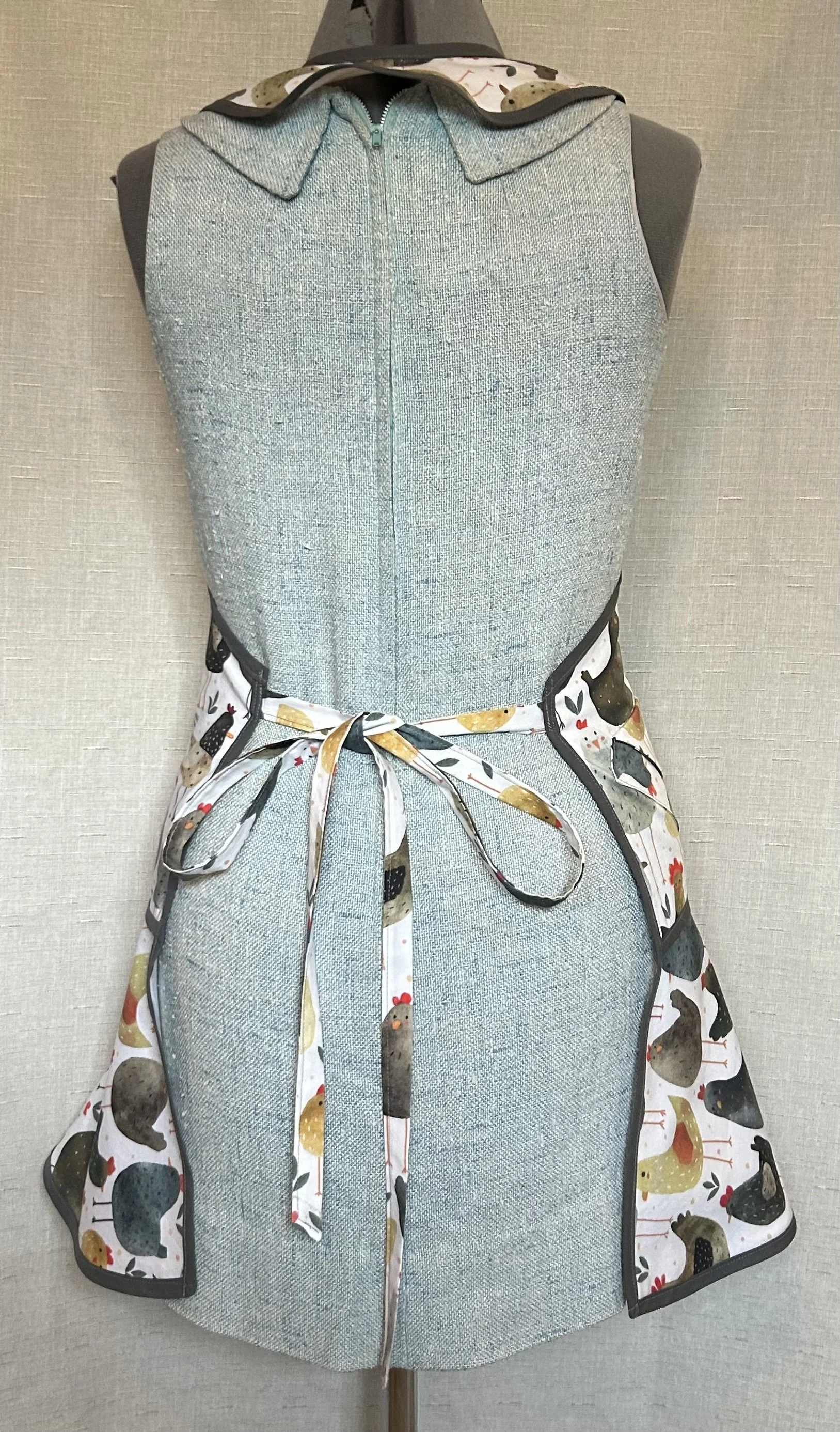 Flirty and sassy are words often used to describe the Swirly and it is a showstopper! When this is on the mannequin front and center if my booth, it brings smiles to the faces of those who are surprised to see an apron that looks like such fun to wear. The skirt of the Swirly is what gives this aprons its pizazz, making it totally irresistible. Once this apron is put on the urge to sashay those hips is hard to resist.
